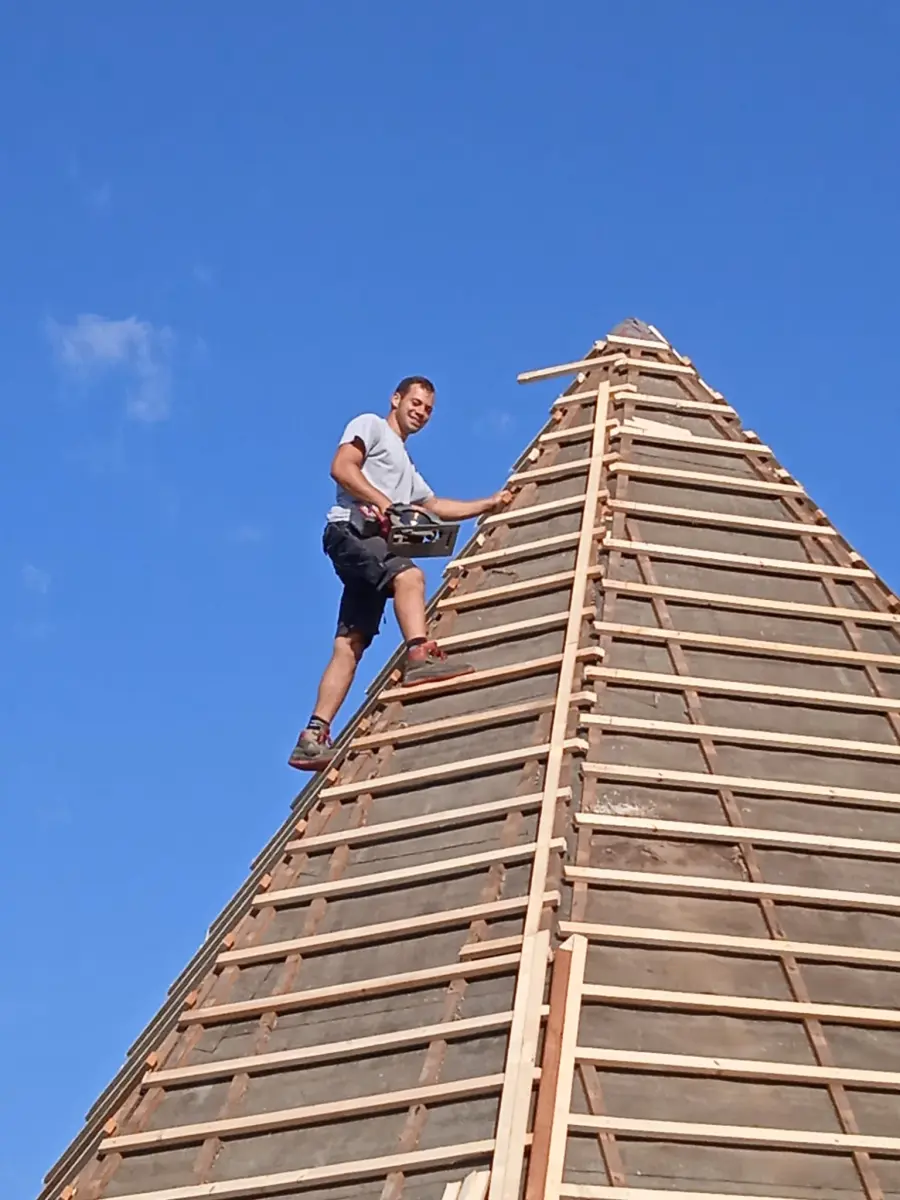 - Holzarbeiten (Vollschalung, Dachlattung, Wärmedämmung)